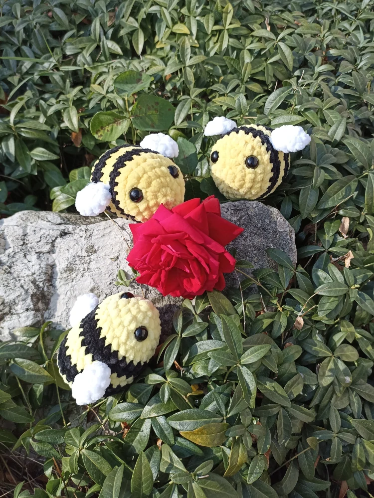Včelka je vyrobena z kvalitní žinylkové příze ( Himalaya Dolphin baby) , vyplněna je kvalitním dutým vláknem a samozřejmostí jsou plastové bezpečnostní oči.